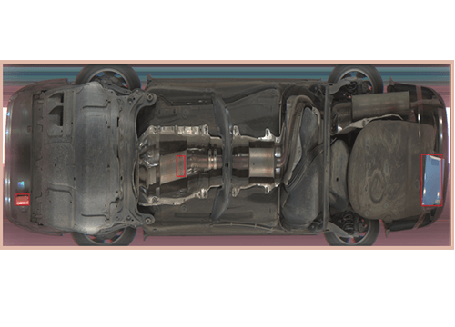 軟件自動(dòng)發(fā)現(xiàn)與辨別車(chē)底盤(pán)存在可疑物,并對(duì)可疑物所在部位通過(guò)軟件自動(dòng)進(jìn)行框選與提示,輔助人員檢查工作。