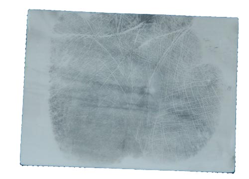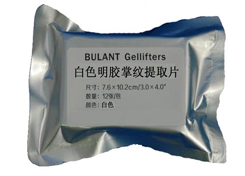 7. 因為明膠提取片具有3、4、5、6項特點,可以用其直接粘取汗液指紋、油脂指紋、油汗混合指紋,