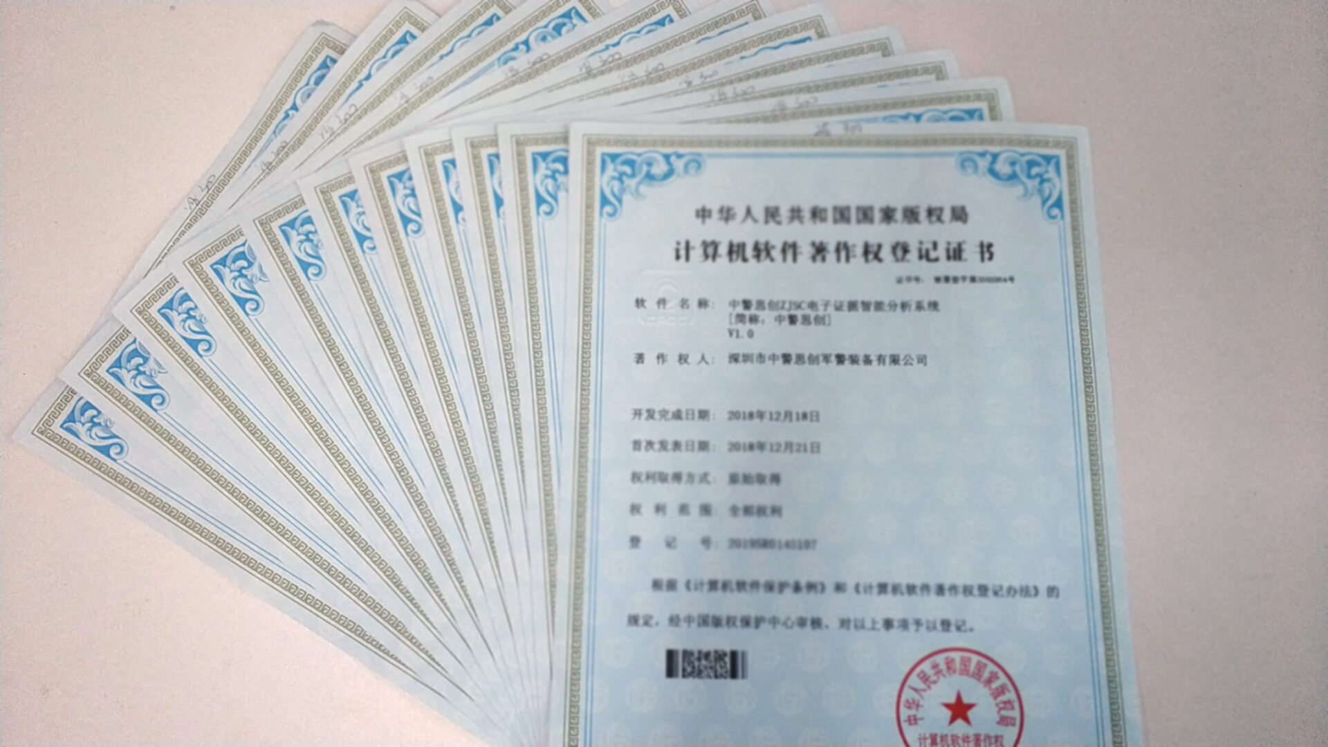 中警思創最新軟件著作權已獲得國家版權局保護