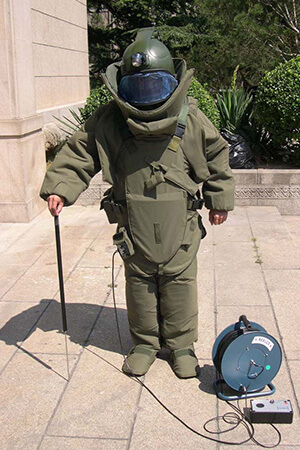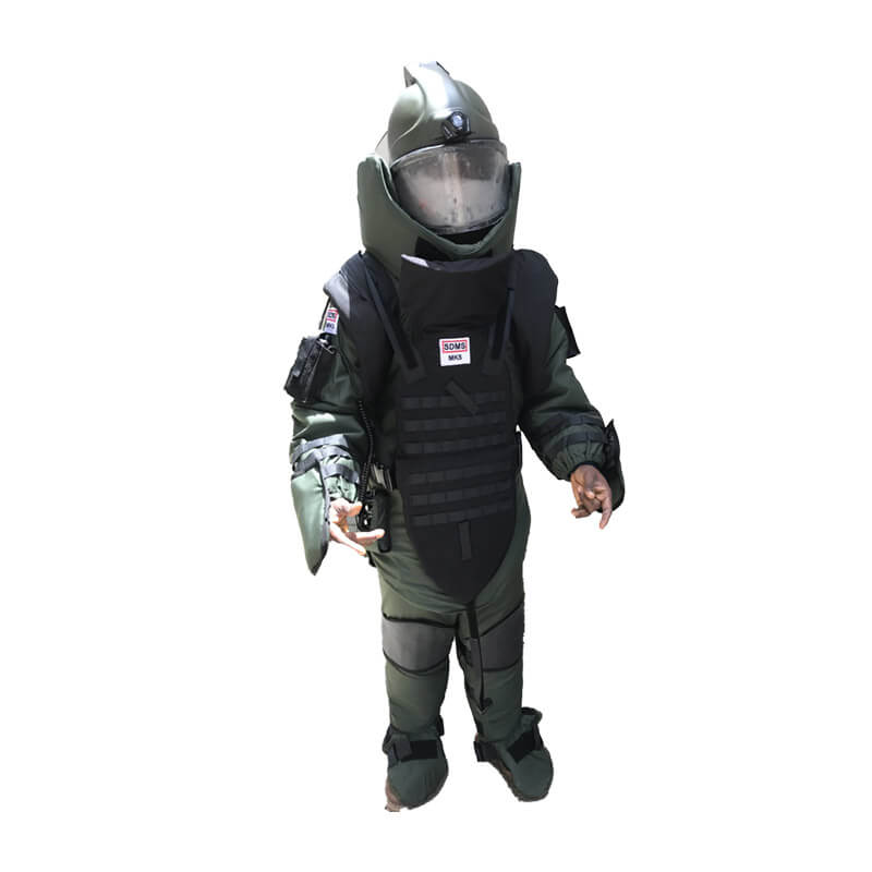 MK5 排爆服是新款的、采用最先進(jìn)技術(shù)的,在MK-4基礎(chǔ)上研發(fā)的新產(chǎn)品。現(xiàn)已在許多國家和地區(qū)使用,是目前所有排爆服系列中抗爆等級最高的,同時為使用人員提供最大限度的舒適和靈活性。其抗爆等級和服裝所使用的材質(zhì)已經(jīng)通過政府有關(guān)部門的全部質(zhì)量保證標(biāo)準(zhǔn)。