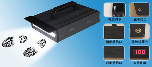 LED足跡燈采用扁平設計,光線呈線性均勻分布,搜索現場足跡范圍大,更易發現足跡和其它物證,廣泛適用于現場勘察搜索工作中使用。產品特點: